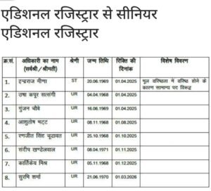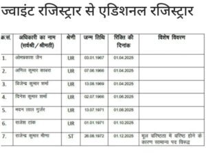 रिव्यू डीपीसी में राज्य सहकारिता सेवा के पांच अधिकारियों को पदोन्नति का लाभ मिला है, हालांकि इनके आदेश अभी तक जारी नहीं किये गये हैं। रेगुलर डीपीसी में राज्य सहकारिता सेवा के 8 अधिकारी एडिशनल रजिस्ट्रार से सीनियर एडिशनल रजिस्ट्रार, 7 अधिकारी ज्वाइंट रजिस्ट्रार से एडिशनल रजिस्ट्रार, 8 अधिकारी उप रजिस्ट्रार से ज्वाइंट रजिस्ट्रार और 12 अधिकारी एसिस्टेंट रजिस्ट्रार से उप रजिस्ट्रार कैडर में पदोन्नत हुए हैं। सहकारिता विभाग के संयुक्त शासन सचिव प्रहलाद राय नागा की ओर से जारी आदेशानुसार, निम्नलिखित अधिकारियों को वर्ष 2025-26 की रिक्तियों के प्रति वरिष्ठता सह योग्यता के आधार पर पदोन्नत किया गया है :-
